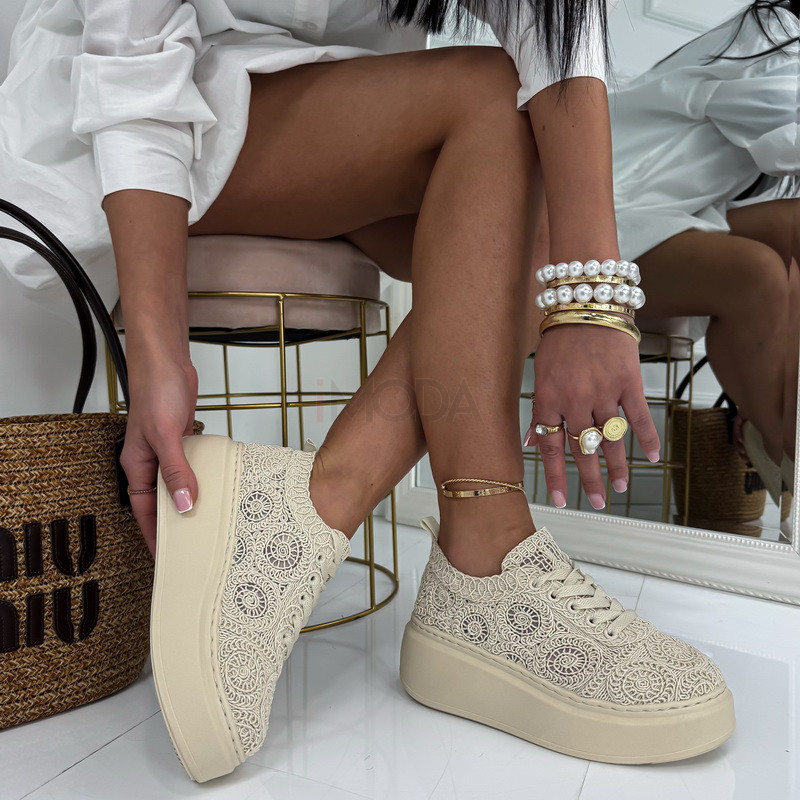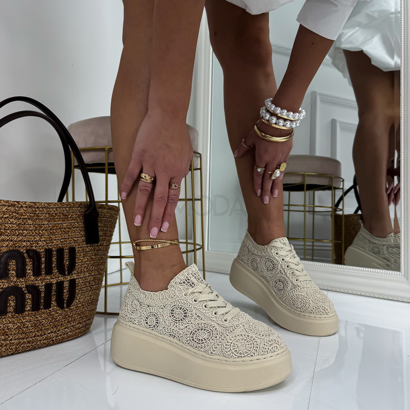 Typ obuvi : TeniskyOdporúčanie pre veľkosť : Zodpovedá klasickému číslovaniu (rozmery v tabuľke)Farba : BéžováUrčené pre : ŽenyDoplnené o : Výšivku/ČipkuVýška podrážky : 6 cmKrajina pôvodu : P.R.C.Materiál zvršku : TextilMateriál podšívky : SyntetikaMateriál podrážky : Syntetika- Instagram Photos
