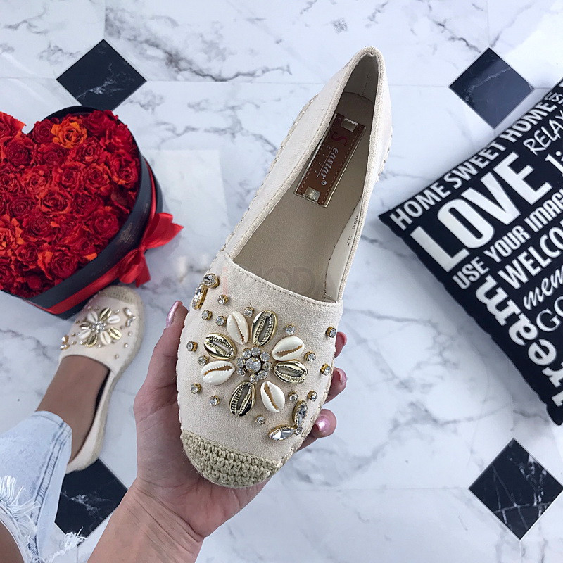 Typ obuvi : MokasínyOdporúčanie pre veľkosť : Zodpovedá klasickému číslovaniu (rozmery v tabuľke)Farba : BéžováUrčené pre : ŽenyDoplnené o : Kryštále/Kamienky/Perly/GlittreVýška opätku : Bez opätkuVýška podrážky : 4,5 cmKrajina pôvodu : P.R.C.Materiál zvršku : TextilMateriál podšívky : Syntetika, TextilMateriál podrážky : Syntetika- Instagram Photos