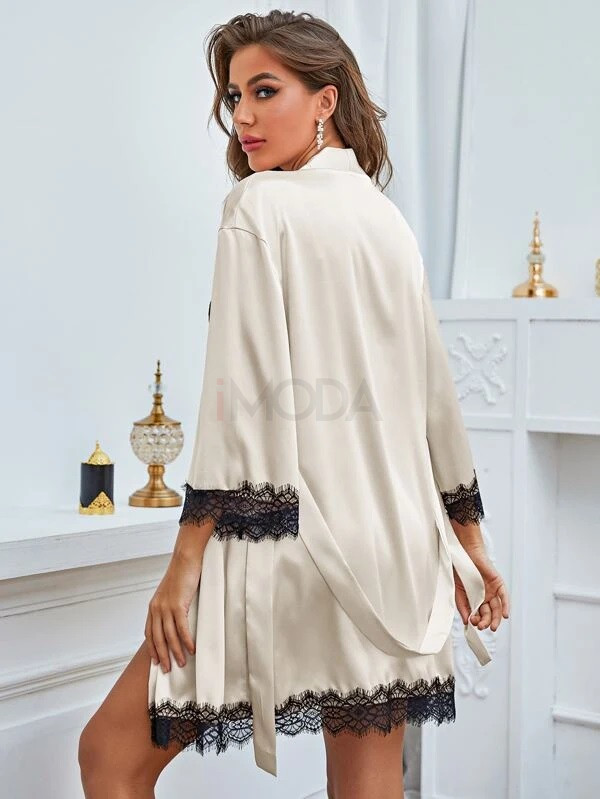 Béžové saténové pyžamo so županom | iMODA.sk