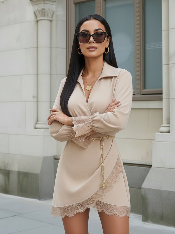 Exkluzívne šaty KIMIE podšité čipkou. Čipkované lemovanie spodnej časti šiat a rukávov tomuto modelu okamžite umožnilo kategóriu LUXIE :) Skvelou kombináciou sú ako vidíme na foto zlaté doplnky a opasok. Ani doplnky, ani opasok niesu súčasťou balenia týchto šiat.