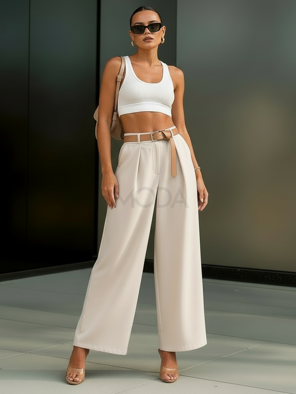 Béžové široké nohavice s opaskom