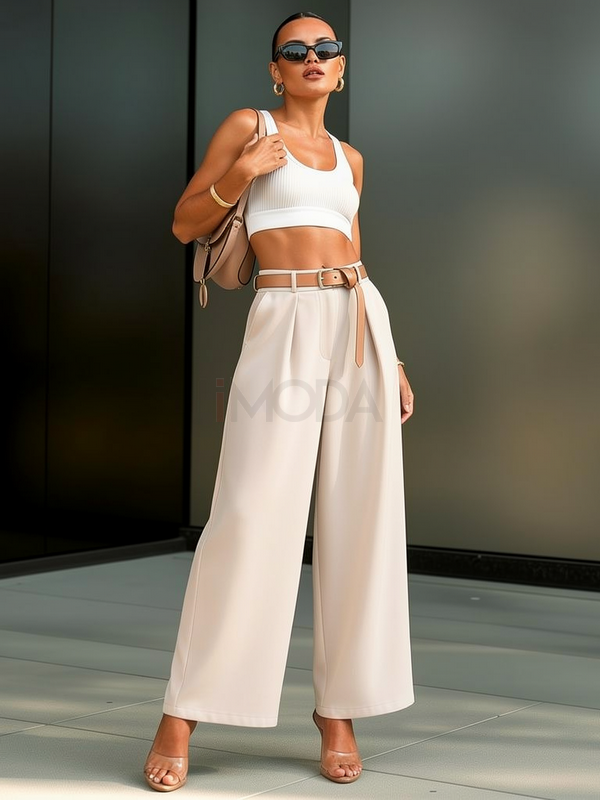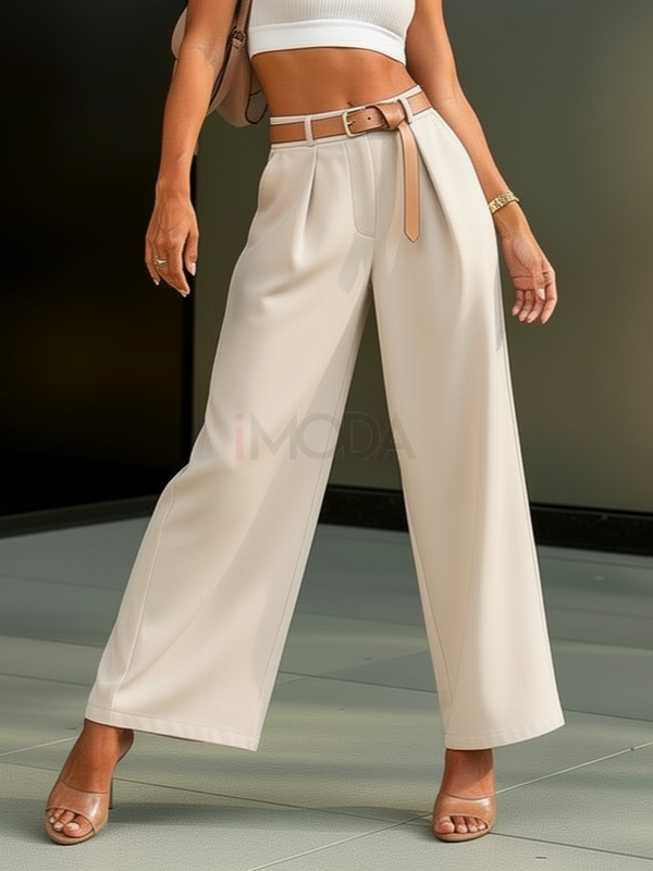 Béžové široké nohavice s opaskom | iMODA.sk