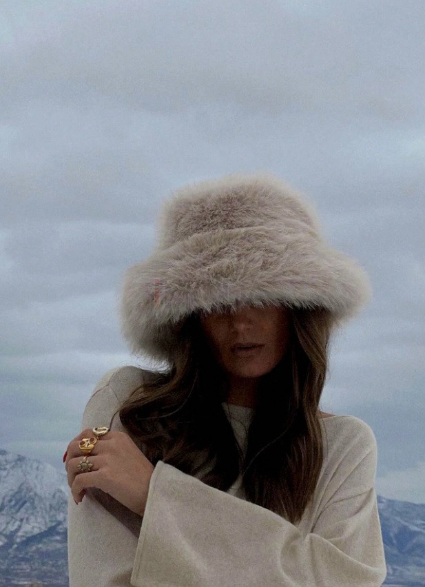 Béžový kožušinový klobúk