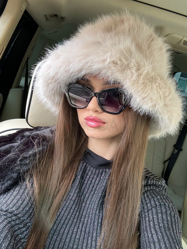 Béžový kožušinový klobúk