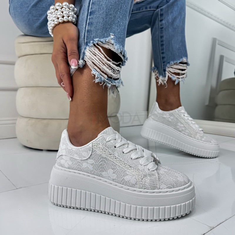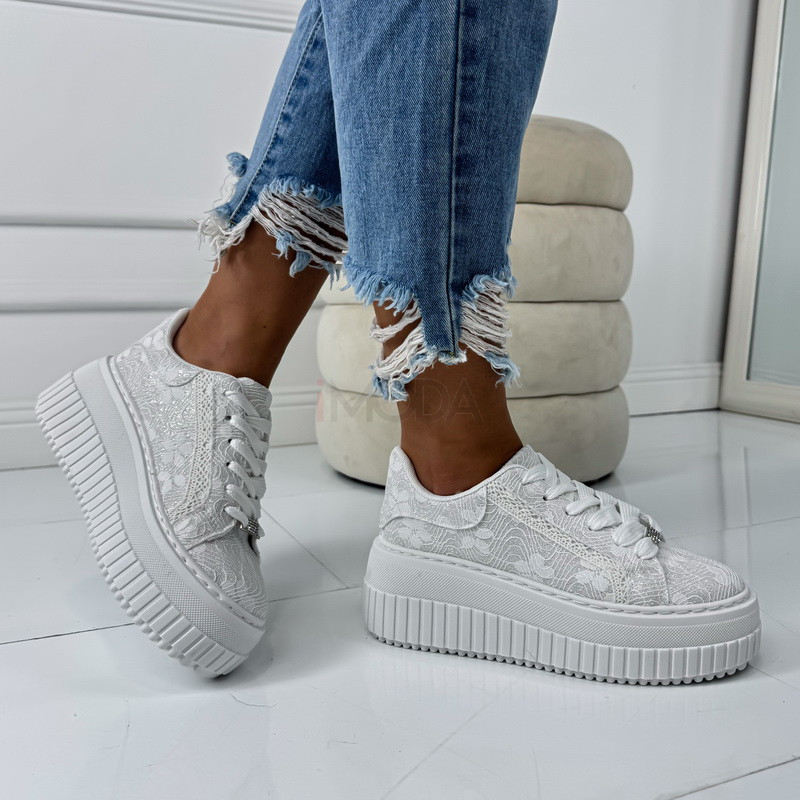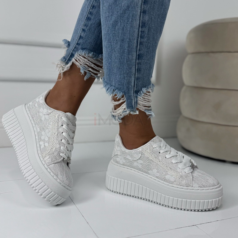 Typ obuvi : TeniskyOdporúčanie pre veľkosť : Zodpovedá klasickému číslovaniu (rozmery v tabuľke)Farba : BielaUrčené pre : ŽenyDoplnené o : Výšivku/ČipkuVýška podrážky : 6 cmKrajina pôvodu : P.R.C.Materiál zvršku : TextilMateriál podšívky : TextilMateriál podrážky : Syntetika- Instagram Photos