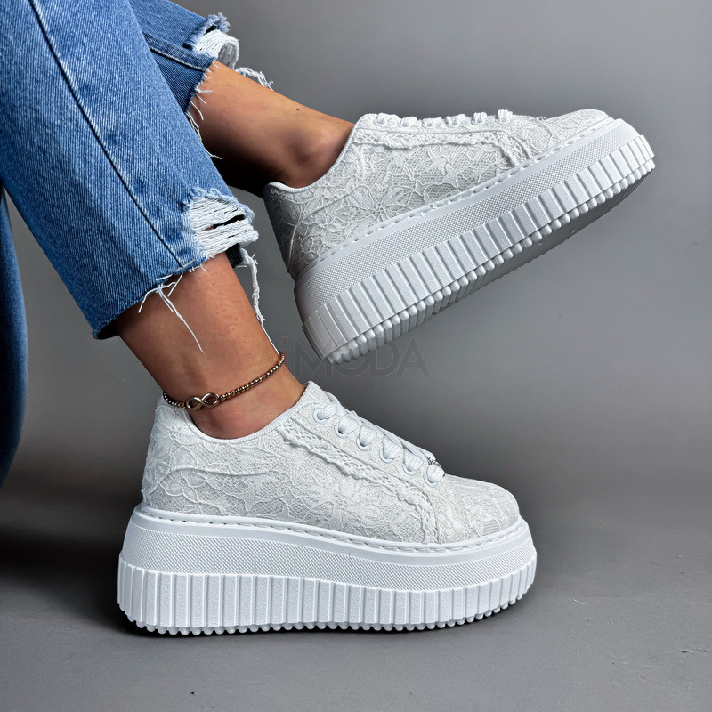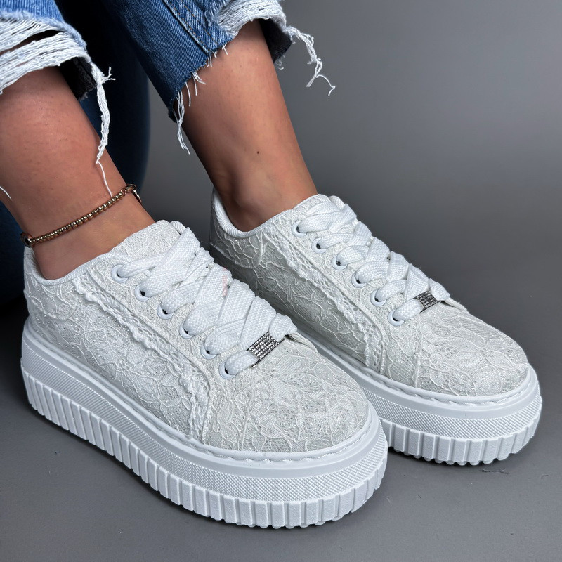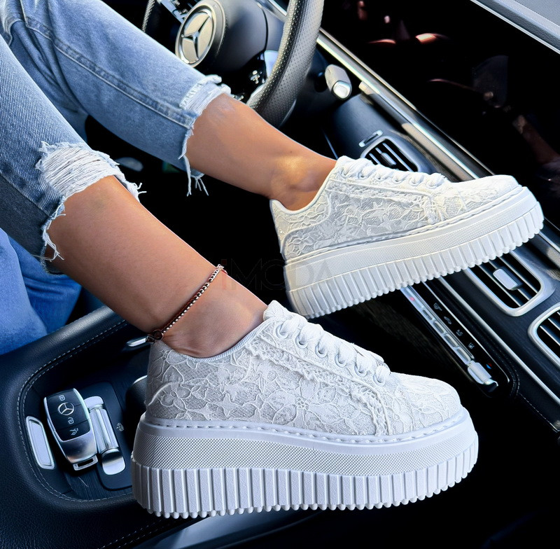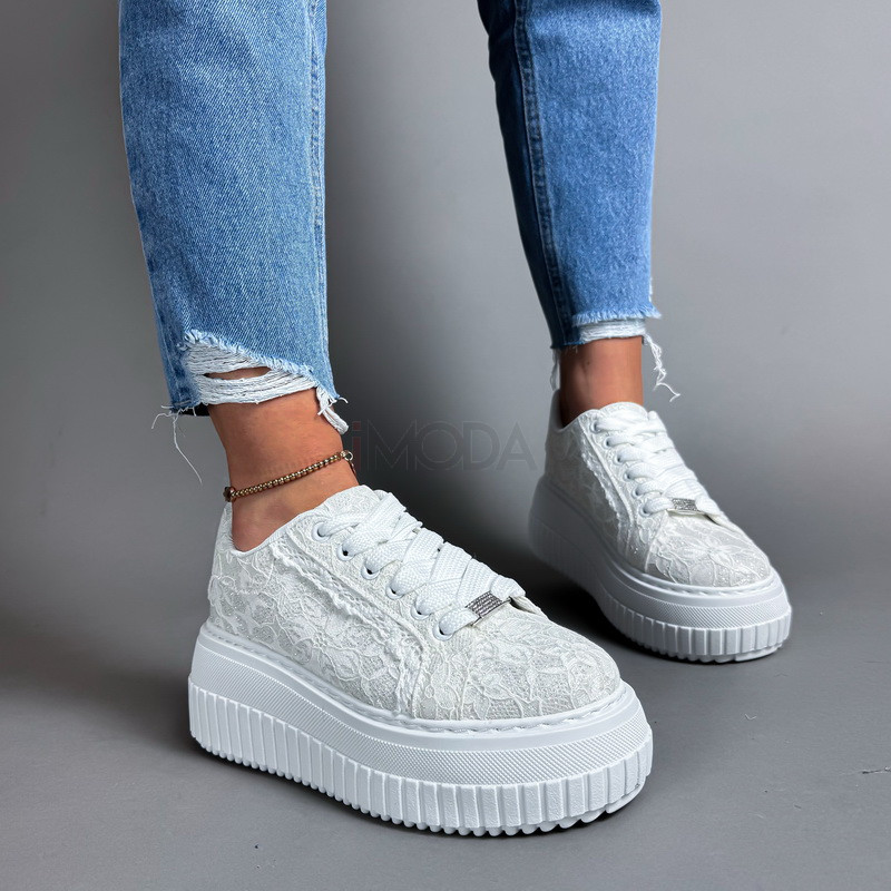 Typ obuvi : TeniskyOdporúčanie pre veľkosť : Zodpovedá klasickému číslovaniu (rozmery v tabuľke)Farba : BielaUrčené pre : ŽenyDoplnené o : Výšivku/ČipkuVýška podrážky : 6 cmKrajina pôvodu : P.R.C.Materiál zvršku : TextilMateriál podšívky : TextilMateriál podrážky : Syntetika- Instagram Photos