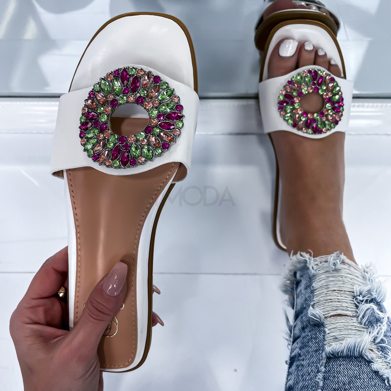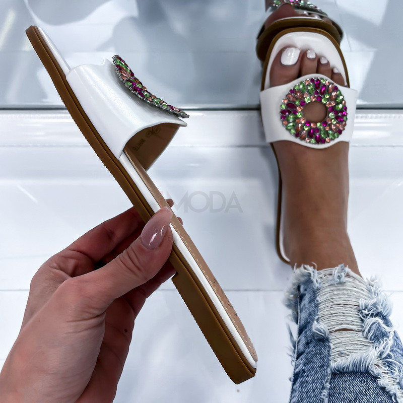 Biele šľapky s farebnými kamienkami - Topánky | iMODA.sk