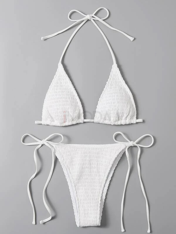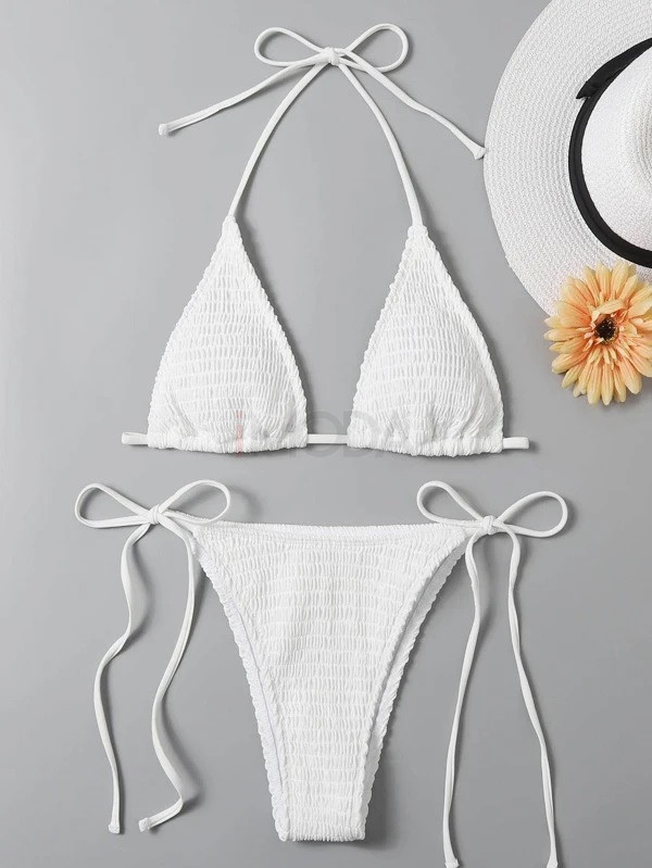 Biele vrúbkované dvojdielne plavky