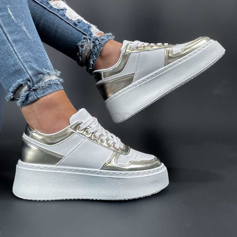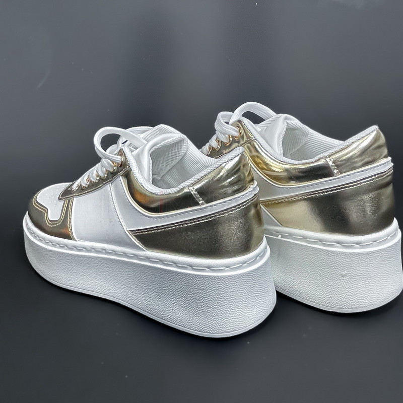 Typ obuvi : TeniskyOdporúčanie pre veľkosť : Zodpovedá klasickému číslovaniu (rozmery v tabuľke)Farba : Biela, ZlatáUrčené pre : ŽenyVýška podrážky : 5 cmKrajina pôvodu : P.R.C.Materiál zvršku : SyntetikaMateriál podšívky : TextilMateriál podrážky : Syntetika- Instagram Photos