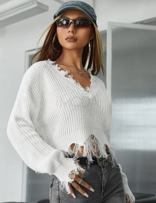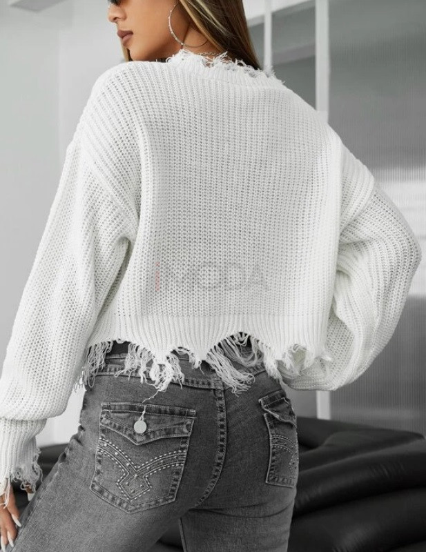 Biely krátky pletený sveter