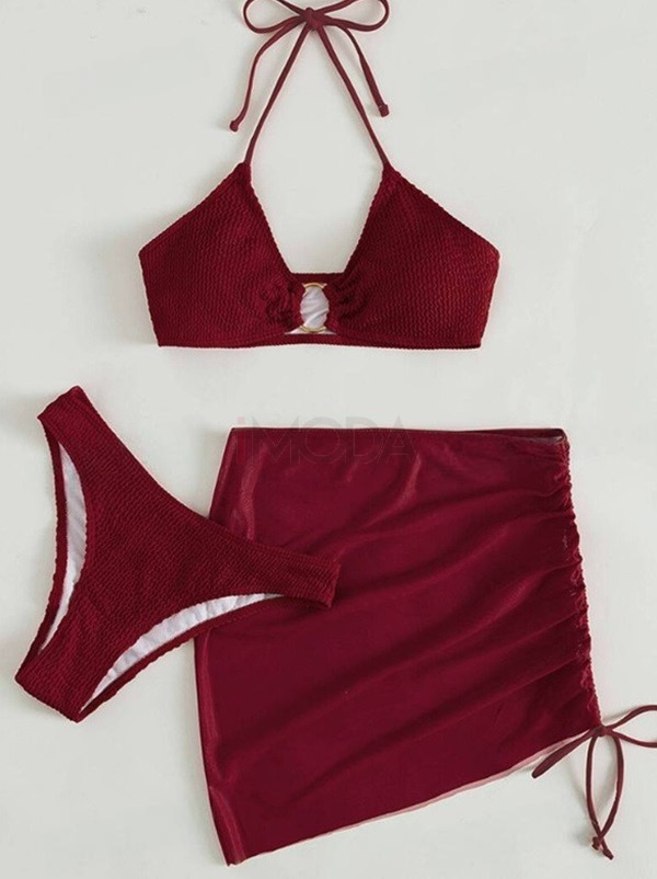 Bordové dvojdielne plavky so sukňou