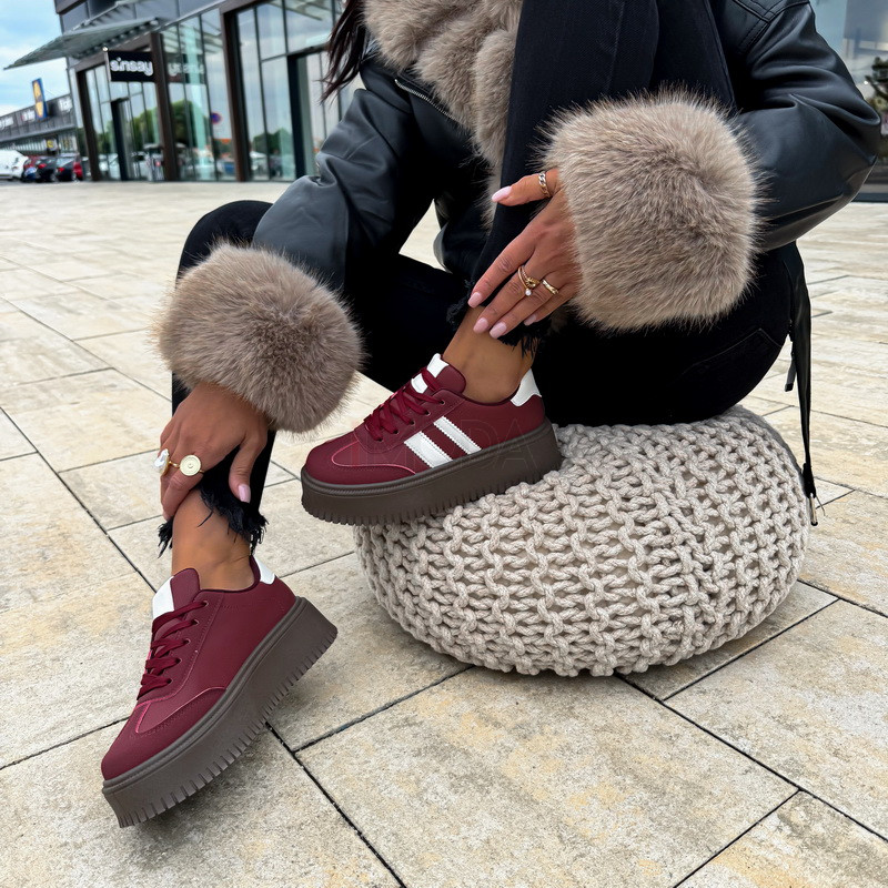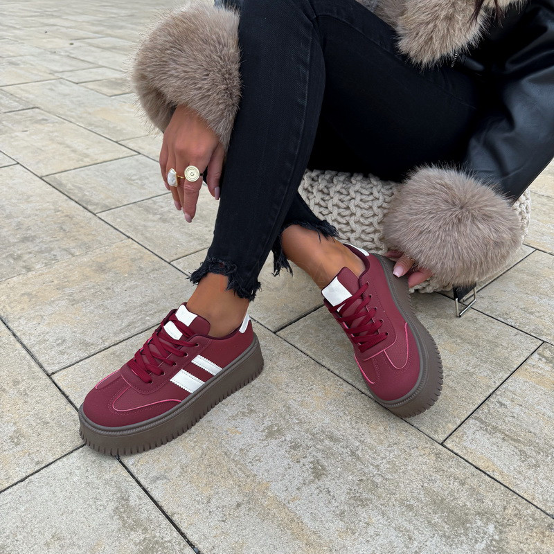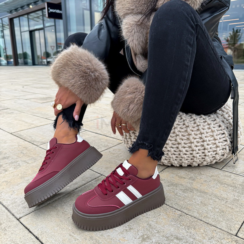 Typ obuvi : TeniskyOdporúčanie pre veľkosť : Zodpovedá klasickému číslovaniu (rozmery v tabuľke)Farba : BordováUrčené pre : ŽenyVýška podrážky : 4 cmKrajina pôvodu : P.R.C.Materiál zvršku : SyntetikaMateriál podšívky : TextilMateriál podrážky : Syntetika- Instagram Photos