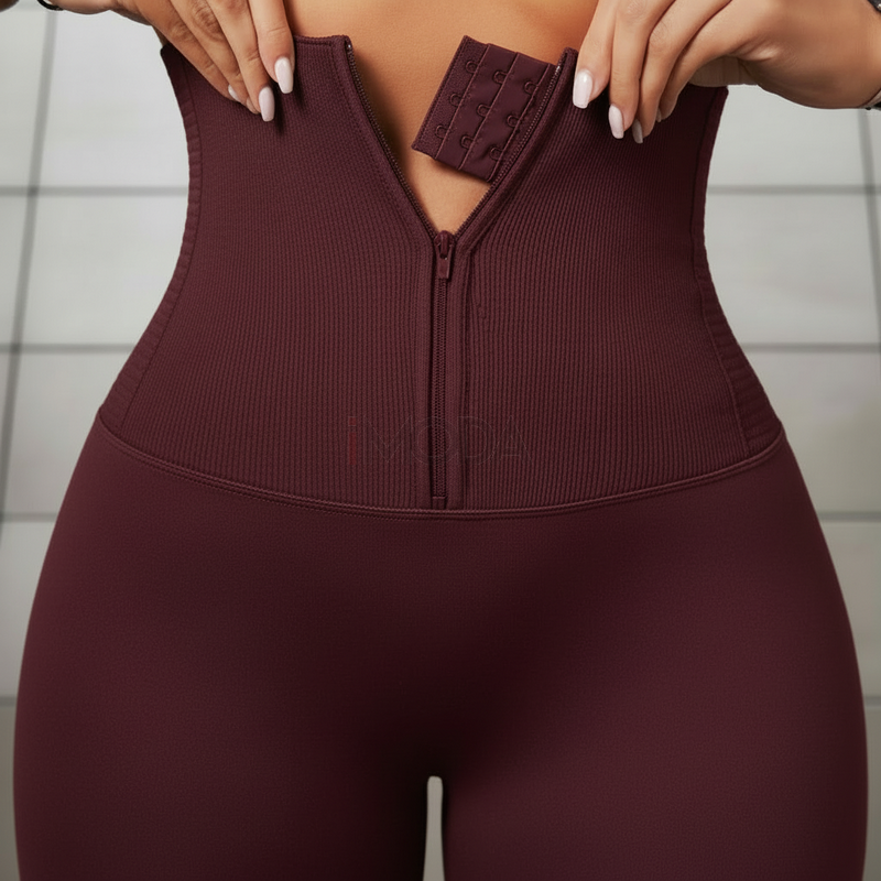 Bordové vrúbkované legíny so zapínaním