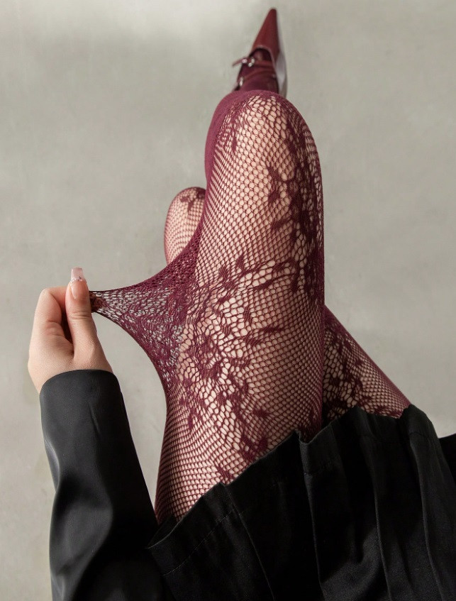 Bordové vzorované pančuchy