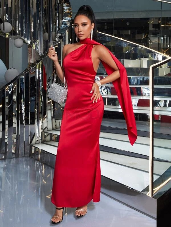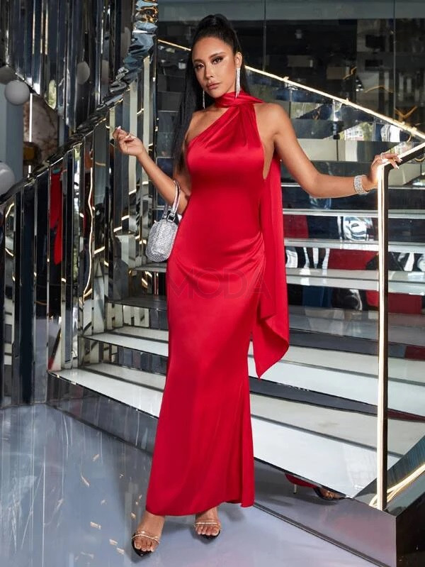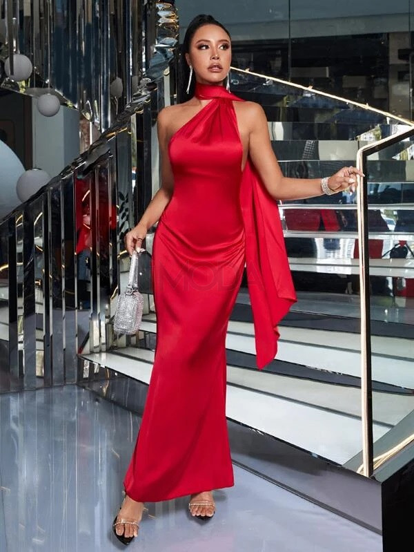 Červené saténové dlhé šaty