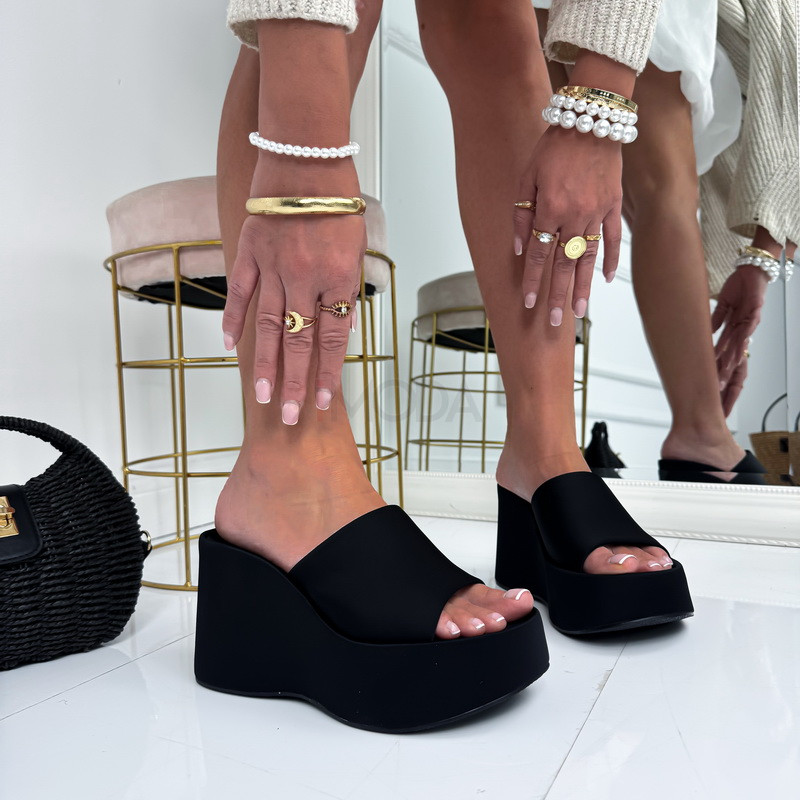 Typ obuvi : ŠlapkyOdporúčanie pre veľkosť : Zodpovedá klasickému číslovaniu (rozmery v tabuľke)Farba : ČiernaUrčené pre : ŽenyVýška podrážky : 10 cmKrajina pôvodu : P.R.C.Materiál zvršku : SyntetikaMateriál podšívky : Syntetika, TextilMateriál podrážky : Syntetika- Instagram Photos