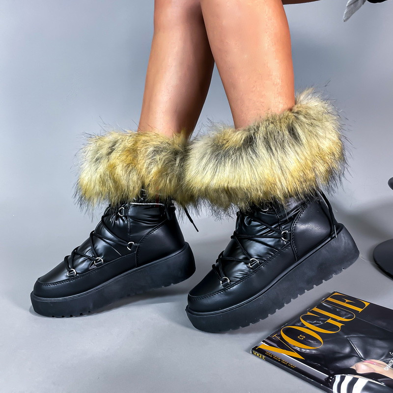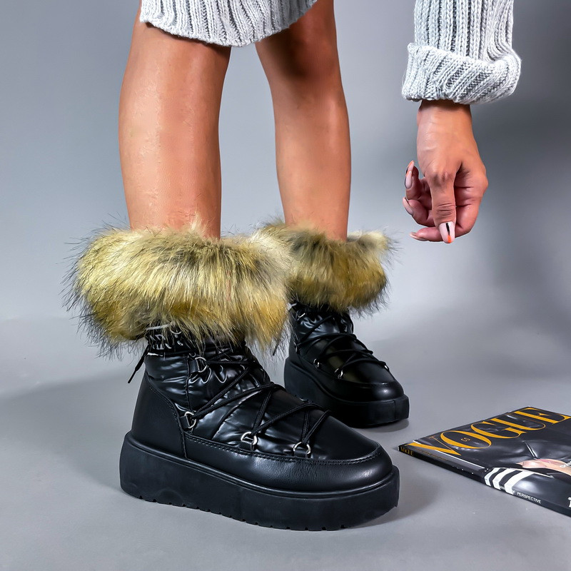 Typ obuvi : SnehuleOdporúčanie pre veľkosť : Zodpovedá klasickému číslovaniu (rozmery v tabuľke)Farba : ČiernaUrčené pre : ŽenyDoplnené o : KožušinkuVýška podrážky : 4,5 cmZateplenie : ZateplenéKrajina pôvodu : P.R.C.Materiál zvršku : Syntetika, TextilMateriál podšívky : TextilMateriál podrážky : Syntetika- Instagram Photos