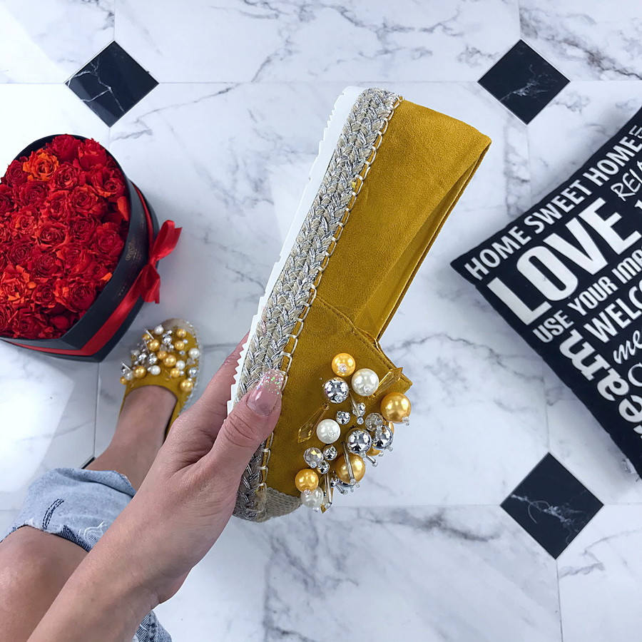 Typ obuvi : MokasínyOdporúčanie pre veľkosť : Zodpovedá klasickému číslovaniu (rozmery v tabuľke)Farba : ŽltáUrčené pre : ŽenyDoplnené o : Kryštále/Kamienky/Perly/GlittreVýška opätku : Bez opätkuVýška podrážky : 2,5 cmKrajina pôvodu : P.R.C.Materiál zvršku : TextilMateriál podšívky : Syntetika, TextilMateriál podrážky : Syntetika- Instagram Photos