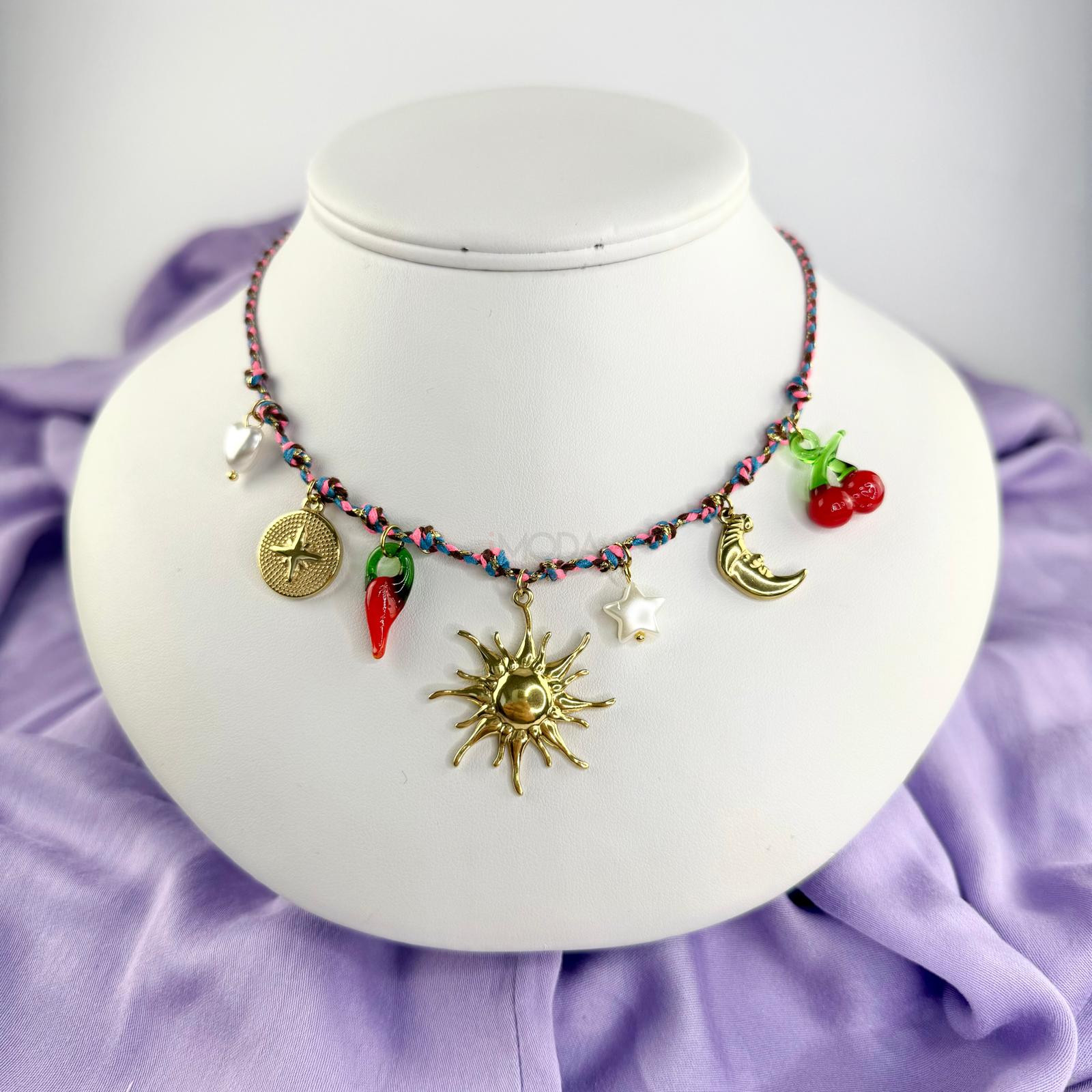 Dámsky oceľový farebný náhrdelník s príveskami | iMODA.sk
