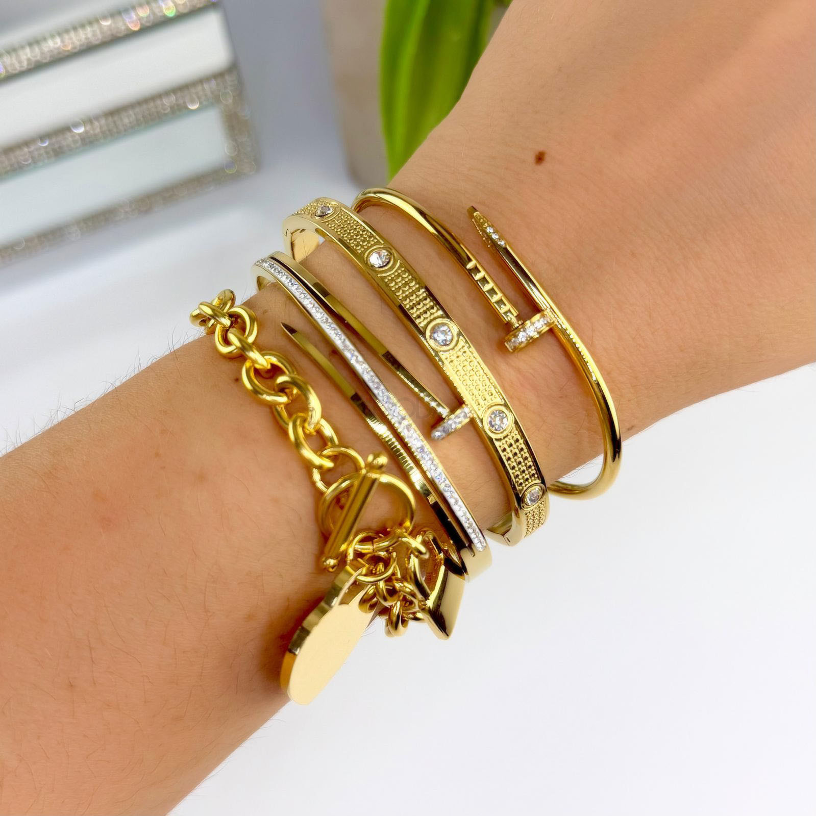 Materiál : Chirurgická oceľUrčené pre : ŽenyPovrchová úprava : Pozlátené žltým zlatomFarba doplnku : ČiernaDĺžka náramku : 18 cmŠirka náramku : 8 mmDĺžka prívesku : 18 mmŠírka prívesku : 12 mmDarčeková krabička : Bez krabičky- Instagram Photos