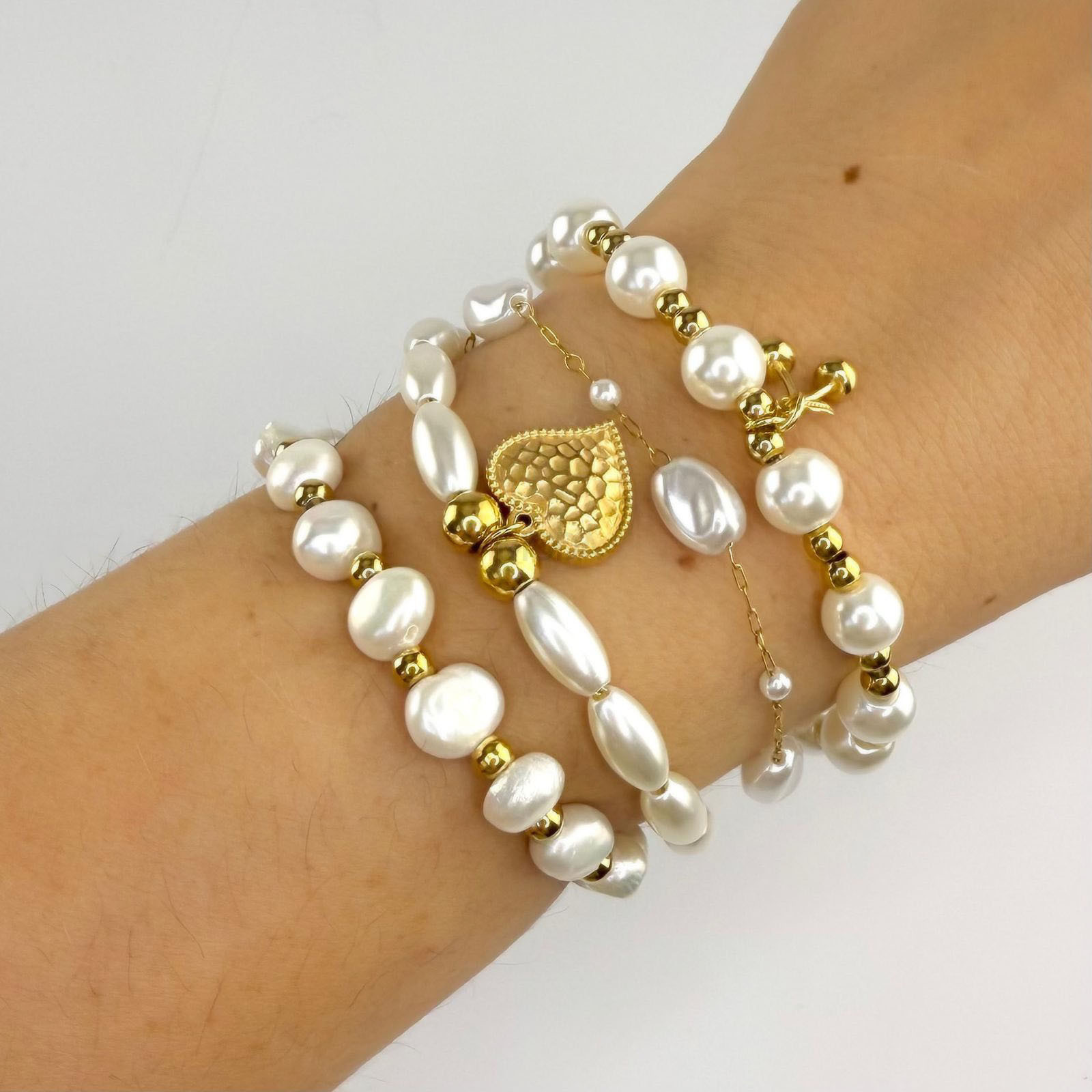 Materiál : Chirurgická oceľ, GumaUrčené pre : ŽenyPovrchová úprava : Pozlátené žltým zlatomDoplnok šperku : PerlaDĺžka náramku : 15,5 cm, 18,5 cmŠirka náramku : 8 mmDĺžka prívesku : 11 mmDarčeková krabička : Bez krabičky- Instagram Photos