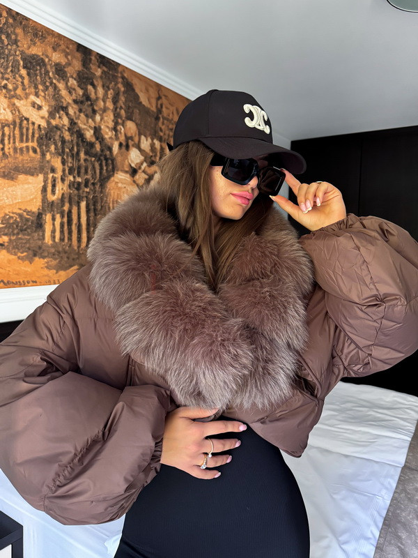 CROP - páperová MOCA bunda. Spojenie FASHION a tepla v jednom. Vyrobená z kvalitného páperového materiálu. Lemovanie bundy tvorí goliér z pravej líščej kožušiny. Bunda sa vyznačuje tiež vreckami, ktoré jej pridávajú praktickosť. Spojenie mohutného goliera a PUFFY strihu z tohto modelu robí LUXUSNÝ kúsok , ktorý musí byť v kolekcii každej FASHION maniačky. Bunda má zapínanie na cvoky.