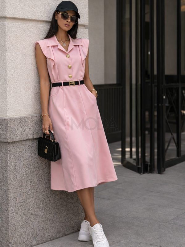 Ružové košeľové midi šaty s opaskom | iMODA.sk