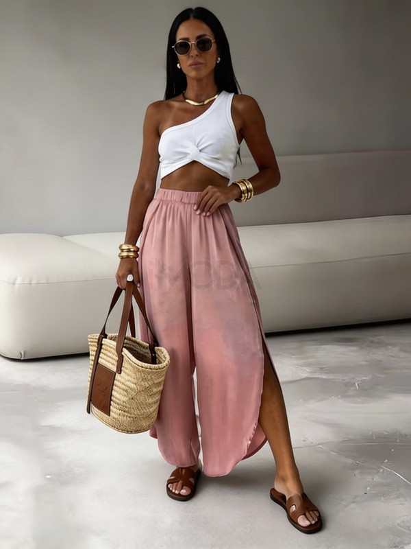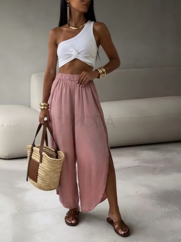Ružové saténové nohavice