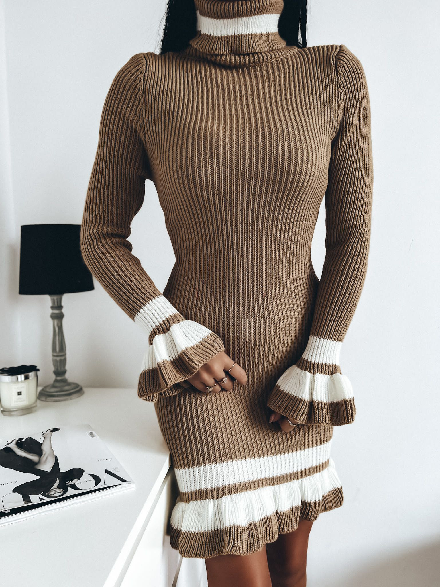 Svetlohnedé pletené rolákové šaty