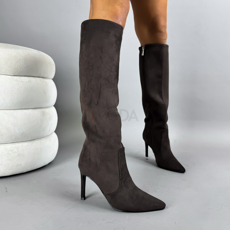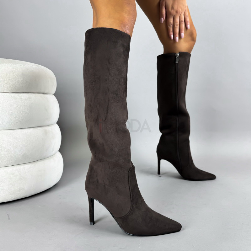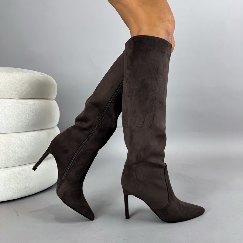 Tmavohnedé semišové vysoké čižmy - Topánky | iMODA.sk