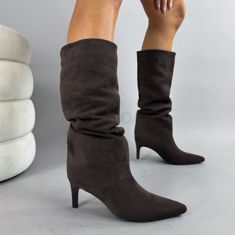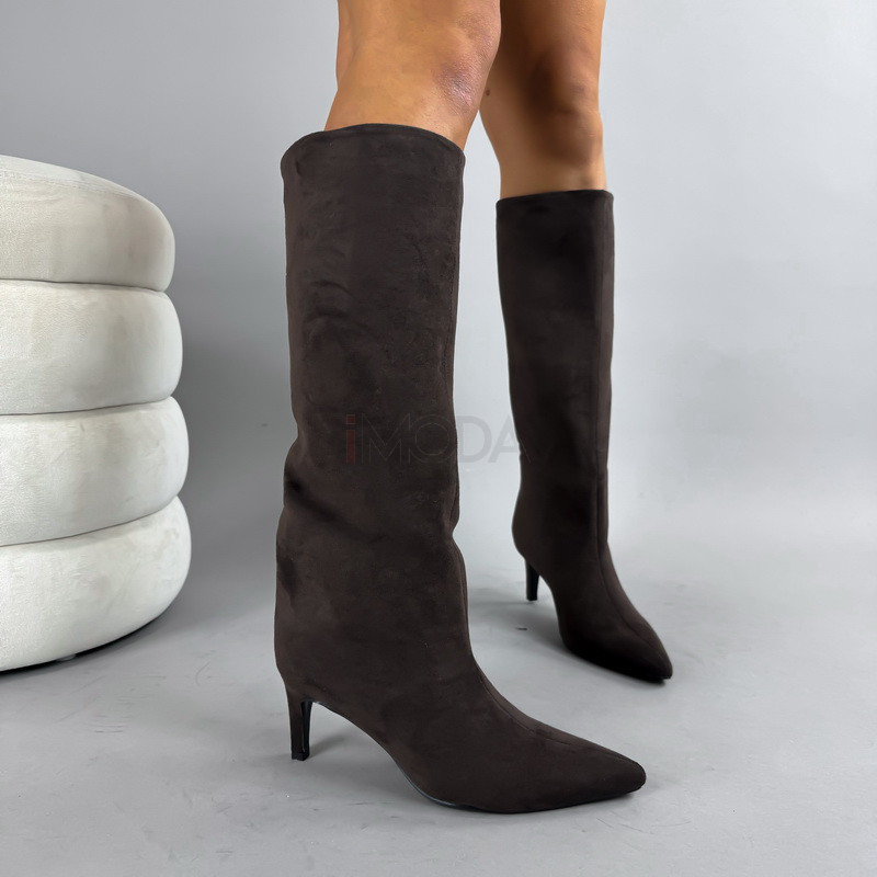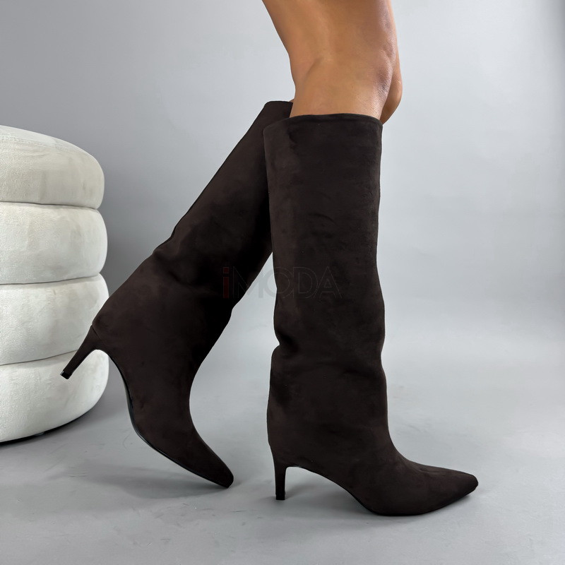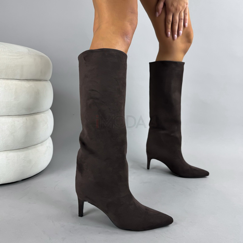Tmavohnedé semišové vysoké čižmy - Topánky | iMODA.sk