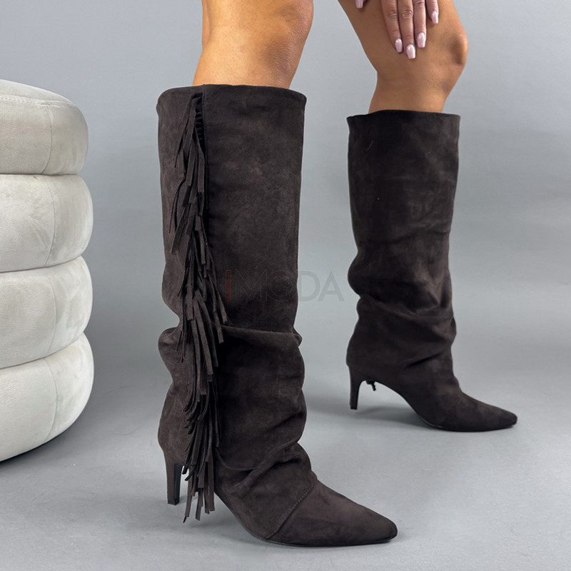 Typ obuvi : Vysoké čižmyOdporúčanie pre veľkosť : Zodpovedá klasickému číslovaniu (rozmery v tabuľke)Farba : TmavohnedáUrčené pre : ŽenyVýška opätku : 7 cmObvod hornej sáry : 42 cmCelková dĺžka (od päty) : 38 cmZateplenie : ZateplenéKrajina pôvodu : P.R.C.Materiál zvršku : TextilMateriál podšívky : TextilMateriál podrážky : Syntetika- Instagram Photos