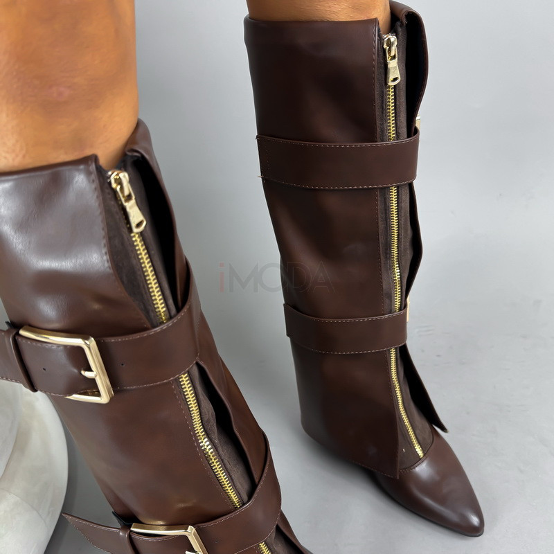 Typ obuvi : Vysoké čižmyOdporúčanie pre veľkosť : Zodpovedá klasickému číslovaniu (rozmery v tabuľke)Farba : Hnedá, TmavohnedáUrčené pre : ŽenyDoplnené o : Cvoky/PrackyVýška podrážky : 8,5 cmObvod hornej sáry : 38 cmCelková dĺžka (od päty) : 40 cmZateplenie : ZateplenéKrajina pôvodu : P.R.C.Materiál zvršku : Syntetika, TextilMateriál podšívky : TextilMateriál podrážky : Syntetika- Instagram Photos