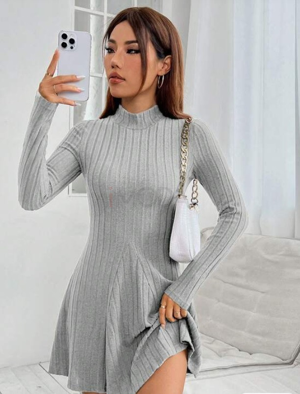 Vrúbkované sivé šaty