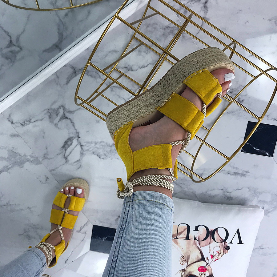 Typ obuvi : Letné sandáleOdporúčanie pre veľkosť : Zodpovedá klasickému číslovaniu (rozmery v tabuľke)Farba : ŽltáUrčené pre : ŽenyVýška opätku : Bez opätkuVýška podrážky : 4,5 cmKrajina pôvodu : P.R.C.Materiál zvršku : TextilMateriál podšívky : Syntetika, TextilMateriál podrážky : Syntetika- Instagram Photos